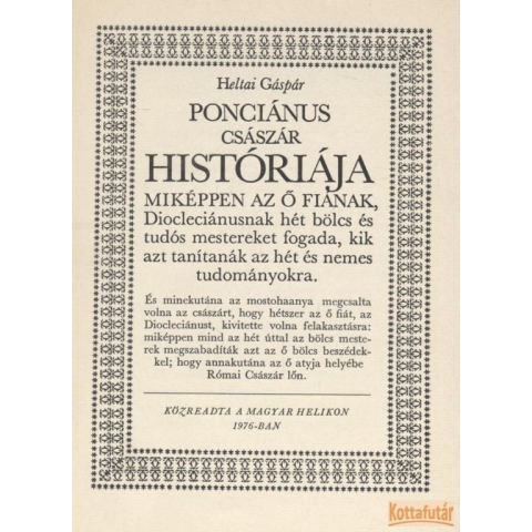 Magyar Helikon Ponciánus császár históriája antikvárium - használt könyv árgrafikon