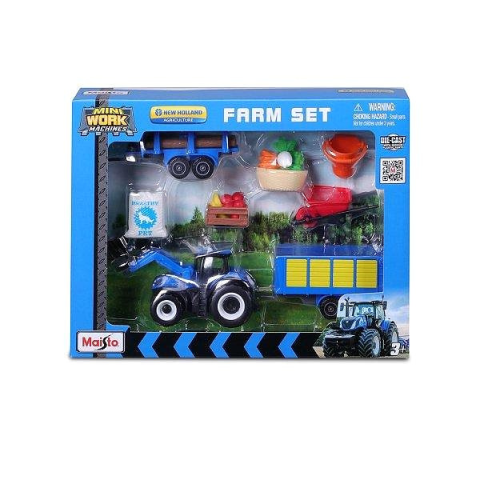 Játék traktor - 190 mm hosszú, anyaga: fém és műanyag, ajánlott életkor: 3 éves Egy megfelelő traktor kétségtelenül sokoldalú és nélkülözhetetlen segítőtársa minden kis gazdának, ezért a New Holland traktor nagyszerű választás. Ezen kívül ez is két pótkocsival és kiegészítőkkel r