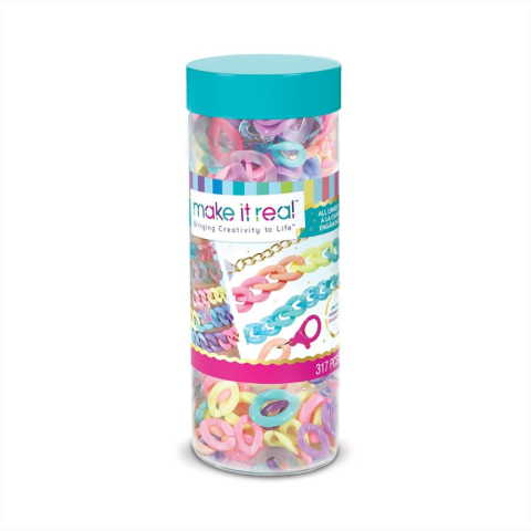 Egymásba illeszkedő és cserélhető színes kapcsok, amelyek arra várnak, hogy egy fiatal tervező életre keltse őket. Több mint 300 darab matt, áttetsző és átlátszó műanyag láncszemet tartalmaz 2 különböző méretben. Különböző típusú kapcsok és dekoratív sze