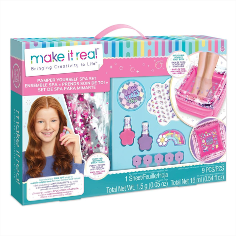 Egy csajos pizsamaparti vagy csak sima kényeztető délután elengedhetetlen kelléke ez a Make it real láb spa készlet. Kényeztessétek lábaitokat egy kis meleg vizes fürdőben azután pedig készítsétek el a tökéletes manikürt a körömlakkok és körömmatricák seg