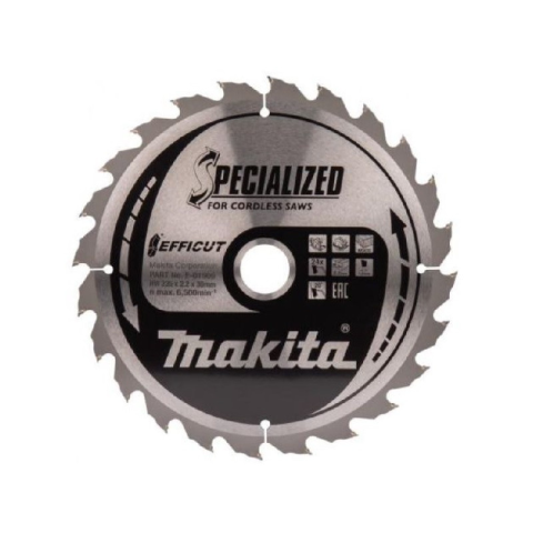 Makita EFFICUT körfűrészlap 235x30mm Z24 (E-01909) Minden általános fa alapú munkához javasolt. Volfrám-keményfém bevonatú (TCT) fűrészlap-sorozat mely széles méretkínálattal választható. Kiváló minőség jellemzi, így ipari és kereskedelmi használat
