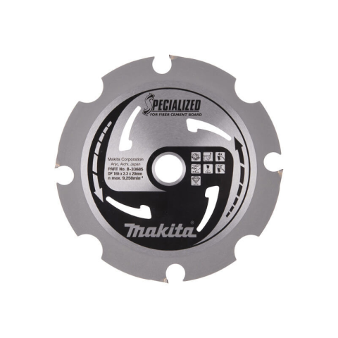 Makita Specialized körfűrésztárcsa. Beágyazott fogú tárcsák, melyek más gyártók gépeihez is használhatóak. A keményfém vágóélek különleges módon vannak az anyagba ágyazva, így ellenállnak a legkeményebb helyzetekben is. Könnyen szembeszáll a csomós f