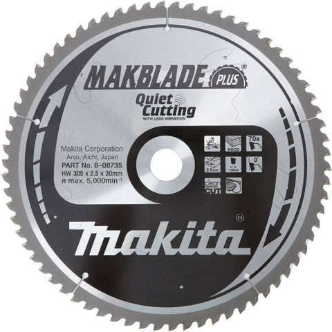 Makita Makblade Plus körfűrésztárcsa 305x30mm Z70 (B-08735) Makblade Plus tárcsák gérvágó fűrészekhez Az gérvágó fűrészekhez készített Makblade Plus tárcsák egyedi szabadalmai:Rezgés és vibráció csillapítást az egyedi kötésű, lézerrel vágott