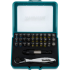 Makita 32 részes bitkészlet- Racsnis szárral- Mágneses bittartóval- Praktikus műanyag dobozban Leszállított tartozékok:25mm-es PHilips bitek:PH1 2dbPH2 3dbPH3 1dbPZ1 2dbPZ2 3dbPZ3 1db 25mm-es torx bitek:T10 1dbT15 2dbT20 3dbT25 3dbT27 1dbT30 2dbT40 1d
