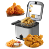 Ez a hagyományos, 2,5 literes olajsütő megbízható eszköz ropogós sült krumpli, hal és egyéb sült ételek elkészítéséhez. Állítható termosztáttal, betekintőablakkal és 1000 W teljesítménnyel rendelkezik , így gyors és egyenletes sütést biztosít . Ideáli