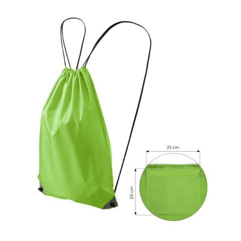 praktikus hátizsák fényvisszaverő elemekkel 2 húzózsinórral mérete: 34 x 45 cm belső zseb, cipzárral ellátva (20 x 23 cm) Anyag: Oxford, 100% poliészter, 70-80 g/m2 Választható színek: