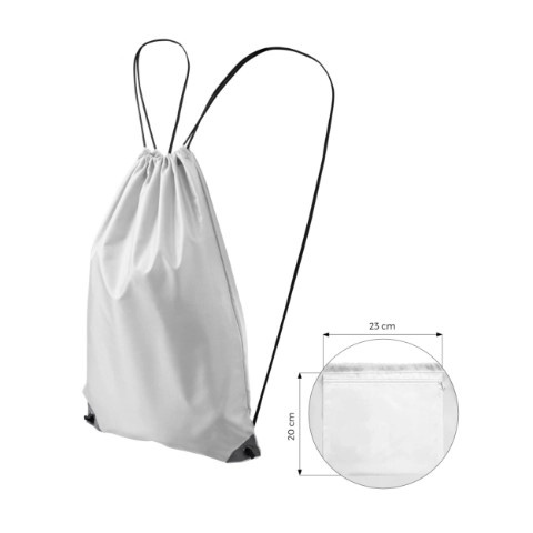 praktikus hátizsák fényvisszaverő elemekkel 2 húzózsinórral mérete: 34 x 45 cm belső zseb, cipzárral ellátva (20 x 23 cm) Anyag: Oxford, 100% poliészter, 70-80 g/m2 Választható színek: