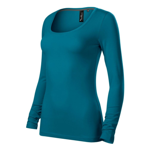 Single Jersey, 95 % pamut 5 % elasztán sztreccs anyag, jobb formatartástesthezálló szabás, oldalvarrássalmélyebb, kerek nyakkivágás1:1 bordás kötésű keskeny nyakszegély 5 % elasztánnala belső nyakrészen eltérő színű szalagmegerősített vállpánthosszú uj