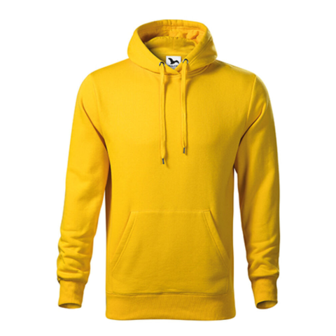 egyenes szabás oldalvarrással, zsinórral összehúzható, bélelt kapucni, hátsó nyakszegély belső oldala saját színű anyagból, rávarrt kenguru zseb, 2:2 bordás kötésű szegély és mandzsetták 5 % elasztánnal, bolyhos belső oldal