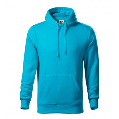 egyenes szabás oldalvarrással, zsinórral összehúzható, bélelt kapucni, hátsó nyakszegély belső oldala saját színű anyagból, rávarrt kenguru zseb, 2:2 bordás kötésű szegély és mandzsetták 5 % elasztánnal, bolyhos belső oldal