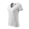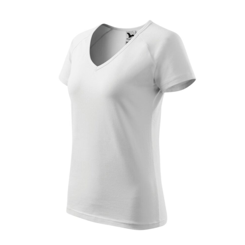 Single Jersey, 95 % pamut, 5 % elasztán (a 12-es szín esetében az anyagösszetétel eltérő lehet - 80 % pamut, 15 % viszkóz, 5 % elasztán) sztreccs anyag, jobb formatartás, testhezálló szabás, oldalvarrással, V nyakú, nyakkivágás saját anyagával szegélye