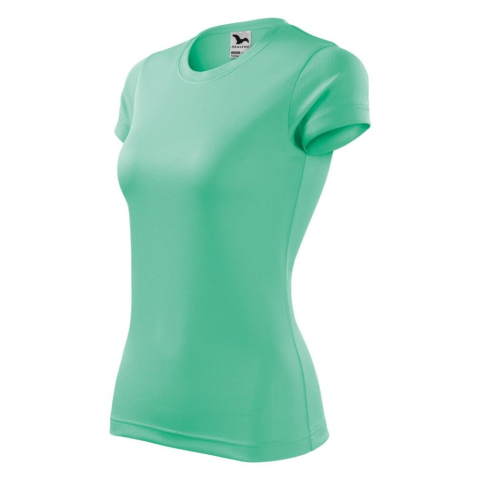 Interlock pique, 100 % poliészter gyorsan száradó anyag ideális sport- és szabadidős tevékenységekhez íves szabású, oldalvarrással keskeny nyakkivágás saját anyagával szegélyezve hátsó nyakszegély belső oldala különböző anyagból megerősített vállpánt s