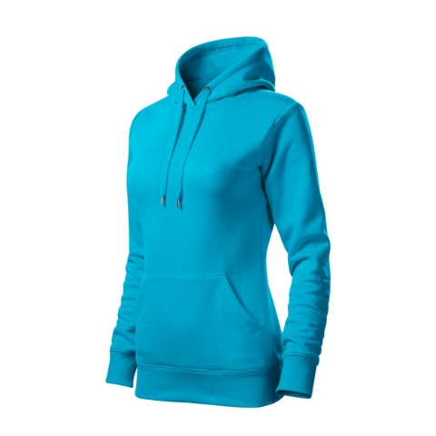 enyhén karcsúsított szabás oldalvarrással, zsinórral összehúzható, bélelt kapucni, hátsó nyakszegély belső oldala saját színű anyagból, rávarrt kenguru zseb, 2:2 bordás kötésű szegély és mandzsetták 5 % elasztánnal, bolyhos belső oldal