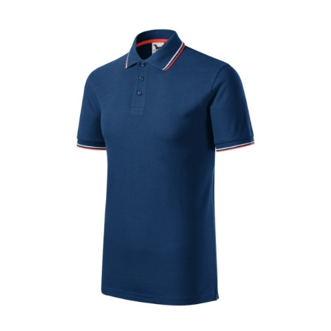 Pique, 65 % pamut, 35 % poliészter (a 12-es szín esetében az anyagösszetétel eltérő lehet – 85 % pamut és 15 % viszkóz) oldalvarrással, 1:1 bordás kötésű gallérral, 2 kontraszt csík az ujjszegélyen és a galléron, gombolópánt 3 gombbal a szövet színében