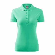 Női galléros pique póló 210 Szűkített szabás oldalvarrással 1:1 bordás kötésű gallér és ujjvégek dupla dombornyomott Bordacsíkkal díszítve Keskeny gombolópánt 5 gombbal a szövet színében Belső nyakkivágás szalaggal díszítve Vállaknál rögzítő varrással Al