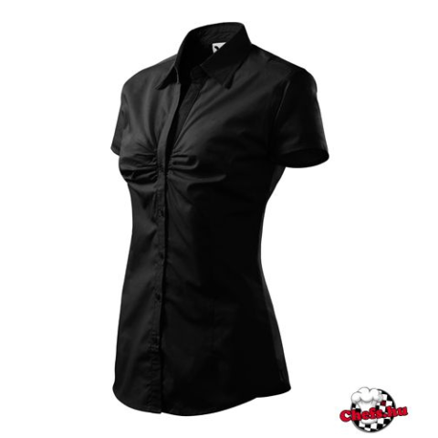 Finom anyagból készült női rövid ujjú ing. Karcsúsított szabása a női vonalakat hangsúlyozza. Kihajtott gallérú, két részes ingnyakkal, gombos megoldással, íves szegéllyel. Méret: XS-XXL-ig Anyaga: 100% pamut puplin 120 g/m2 A feltüntetett árak bruttó ára