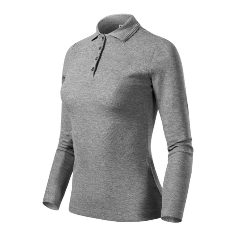 1 kép Malfini Pique Polo LS galléros póló női sötétszürke melírozott S