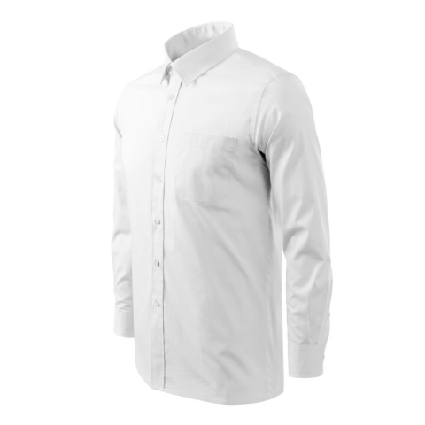 egyenes szabás, oldalvarrással hátsó rész dupla letűzéssel és hajtással dupla ing gallér elülső rész gombolópánttal végződik rávarrt mellzseb hosszú ujjú, kerek mandzsettával és 1 gombbal gombok a szövet színében (plusz 2 tartalék gombbal) Szín: fehér