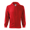 egyenes szabás oldalvarrással műanyag cipzár teljes hosszban zsinórral összehúzható, bélelt kapucni a belső nyakrészen eltérő színű szalag rávarrt kenguru zsebek 2:2 bordás kötésű szegély és mandzsetták 5 % elasztánnal bolyhos belső oldal Szín: piros
