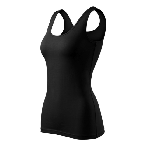sztreccs anyag, jobb formatartás testhezálló szabás, oldalvarrással mélyebb, kerek nyakkivágás nyak- és ujjkivágása saját anyagával szegélyezve szélesebb pántok Szín: fekete Nem: Női Anyagösszetétel: 95 % pamut, 5 % elasztán Grammsúly: 180 g/m2 Mosha