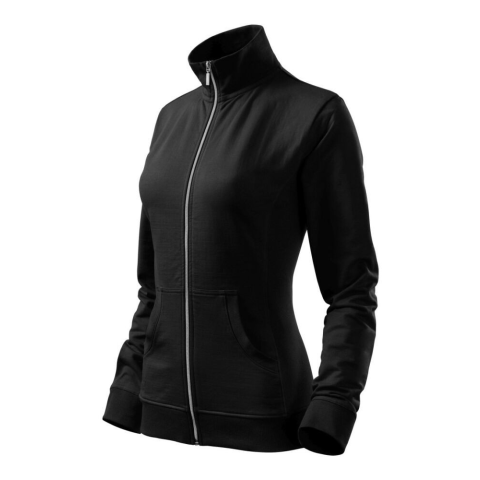 sztreccs anyag, jobb formatartás, karcsúra szabott oldalrésszel, ezüstszínű cipzár teljes hosszban, 2:2 bordás kötésű állógallér és oldalrészek 5 % elasztánnal, beslő nyakszegély saját színű anyagból, rávarrt kenguru zsebek, 2:2 bordás kötésű alsó sze