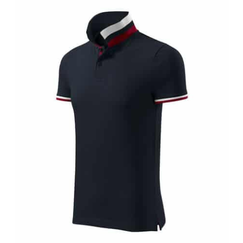 Pique, 100 % pamut oldalvarrással, 1:1 bordás kötésű gallérral és ujjvégekkel, a felhajtható gallér alsó felülete és az ujjak szegélye kontraszt színű csíkokkal, gombolópánt 2 gombbal a szövet színében, az oldalvarrásokban és az alsó nyílásban a hasíté