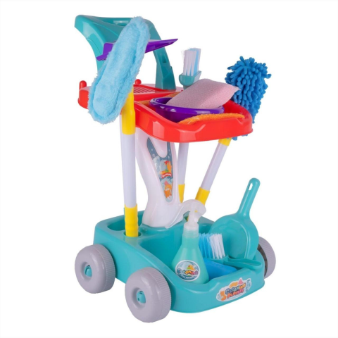 Irtsd a koszt!Ezzel a takarítókocsival és a rajta lévő eszközökkel a gyerekek játékosan utánozhatják a takarítást, miközben fejlődik a kézügyességük és a felelősségérzetük. A kocsi teljes felszereléssel érkezik, így a kicsik valódi „mini takarítóként” rak
