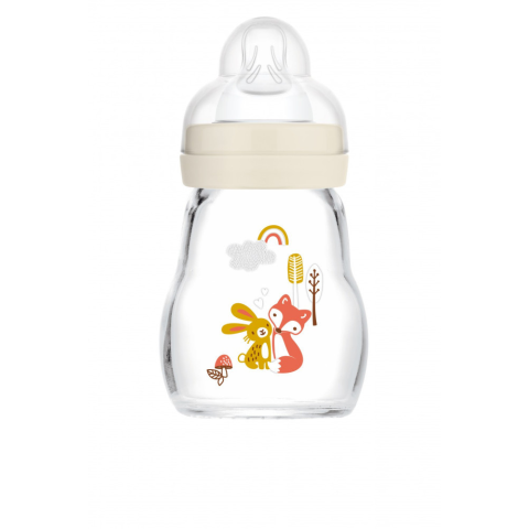 1 kép Mam Feel Good Üvegből készült cumisüveg 170 ml - 0h+ - Bézs - Róka és nyuszi