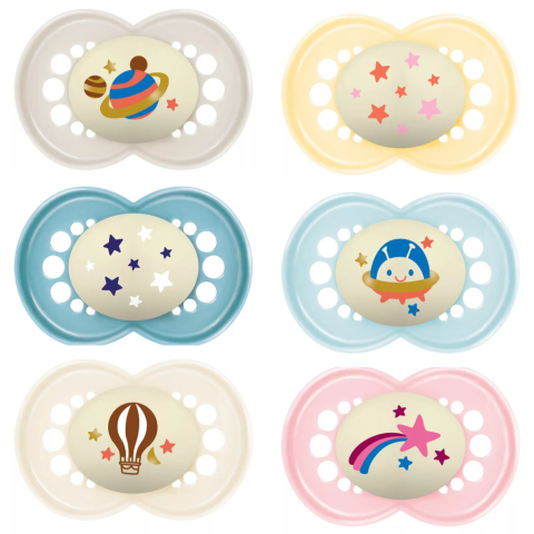 Kérjük, hogy a képen lévő színekből az Ön által választott színt a megrendelés megjegyzésébe tüntesse fel!A gomb világít a sötétben – könnyű megtalálniOrtodontikusMegnyugtatja és megvigasztalja a babátSzimmetrikus, vékony és állkapocsbarát tesztMAM SkinSo