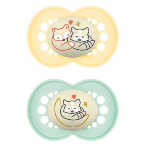 1 kép Mam Original Night szilikon nyugtató cumi 2db 6+ hónap - Sárga / Menta Róka