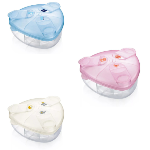 Kérjük, hogy a képen lévő színekből az Ön által választott színt a megrendelés megjegyzésébe tüntesse fel! A tejporadagoló rendkívül könnyű anyagból készül, és 3 adag tejpor tárolására alkalmas. Az innovatív háromszögformának köszönhetően a tejpor egysze
