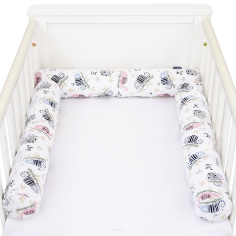 Kiságy rácsvédő - 3x60 cm henger forma hossza: 180 cm (3x60 cm) (+/- 3cm) átmérője: 12 cm (+/- 3cm) külső anyag: 100% pamut töltet: rugalmas és légáteresztő szilikonizált golyó Kompatibilis: 60x120 és 70x140 cm. A kiságy rácsvédőjének fő feladata, hogy