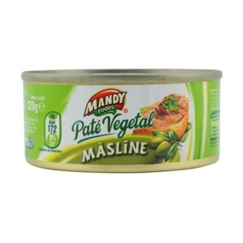 MANDY NÖVÉNYI PÁSTÉTOM OLIVÁS Májkrém ízhez megtévesztésig hasonlító ízű növényi pástétom konzerv. Összetevők:víz,napraforgónövényiolaj,szójafehérje,búza keményítő,jódozottsó,zselésítőanyag(karragén),sűrítőanyag(guar gumi),szárított zöldségek,emulgeálósze