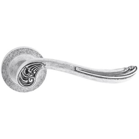 Antikolt felületű ajtókilincs. Körrozettás ,rugós működtetésű. Alapanyaga speciális alumínium ötvözet. Rusztikus díszes barokk stílusú felülete egyedi dísze lehet az otthonnak. Az ajtókilincs a klasszikus kategóriába helyezkedik el köszönhetően a lágyan h