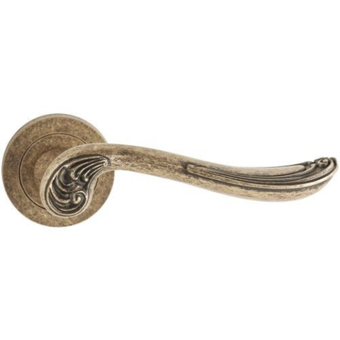 Antikolt felületű ajtókilincs. Körrozettás ,rugós működtetésű. Alapanyaga speciális alumínium ötvözet. Rusztikus díszes barokk stílusú felülete egyedi dísze lehet az otthonnak. Az ajtókilincs a klasszikus kategóriába helyezkedik el köszönhetően a lágyan h