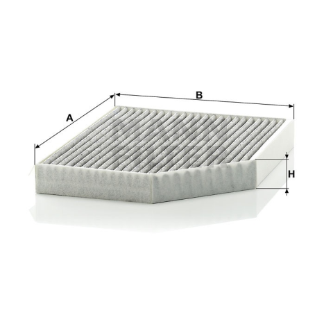 - Hossz 279 mm, Szélesség 240,5 mm, Magasság 35 mm, aktívszén szűrő