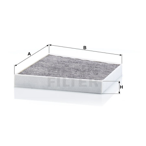 - Hossz 314 mm, Szélesség 152 mm, Magasság 40 mm, aktívszén szűrő