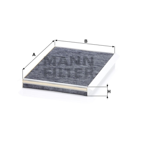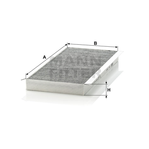 - Hossz 363,5 mm, Szélesség 251,5 mm, Magasság 36 mm, aktívszén szűrő