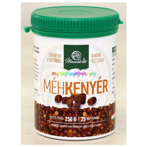 Mannavita Méhkenyér Egyenesen a kaptárból: a méhek téli eledele, Szuperfood. Kiszerelés: 250 gramm A méhkenyér a méhek által termelt fermentált virágpor a méhkaptár belsejében. A méhkenyeret a méhek telelésük során fogyasztják. A méhkenyér azon
