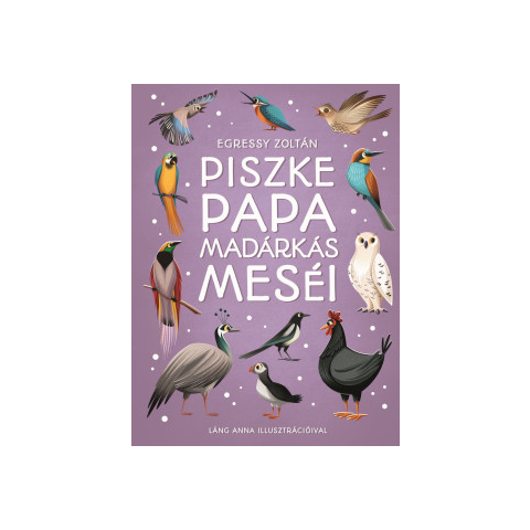 Ugye ismeritek már a kalapos, szalmaszálat rágcsáló Piszke papát és az ő különleges állatmeséit? Ezúttal olyan madarakról mesél majd nektek, akik kedves ismerőseitek lesznek a történetek végére. Kíváncsiak vagytok, kikről lesz szó? Elsőként egy fekete-fehérbe öltözött szarkáról, aki azt mondja: csek-csek-csek. Aztán egy színpompás gyurgyalagról, majd egy ráérősen repkedő pacsirtáról, utána egy tétova hóbagolyról, de lesz szó a rémüldöző papagáj