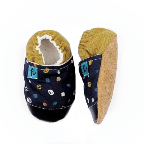 Manubaba Puhatalpú kiscipő az első lépésekhez - Sötétékék irka-firka