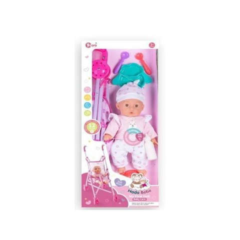 - 35 cm-es játékbaba - Stabil babakocsi - Kiegészítők: cumisüveg, edénykészlet, bili - Kiváló minőségű anyagok - Szerepjátékhoz ideális - Fejleszti a képzelőerőt Csomagolás mérete: 55 x 23 x 10 cm