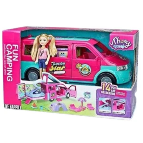 Ki ne szeretne kempingezni?A gyerekek szórakoztató kalandokra indulhatnak ezzel a játékszettel, aminek csak képzeletük szabhat határt. A készlet egy babát és számos kiegészítőt tartalmaz, amire csak szükség lehet egy kényelmes kempingezéshez: sátor, napágy, medence, grillsütő.. Az autó összes ajtaja kinyitható, teteje pedig felnyitható és hűsölővé alakítható. A termék jellemzői:- Nyitható autóajtók- Sátor, napágy, medence, grillsütő és további kiegész