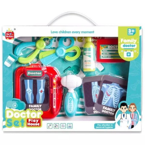 A segítség úton van!Ezzel a játékszettel a gyerekek belekóstolhatnak az orvoslás világába. A szett részletesen kidolgozott és biztonságos anyagokból készült, és különböző orvosi eszközöket tartalmaz amivel a kis orvoscsemeték eljátszhatják, hogy meggyógyítják megbetegedett barátaikat. A játék során fejlődik a gyerekek kreativitása és képzelőereje.A termék jellemzői:- Részletesen kidolgozott orvosi eszközök- Biztonságos, gyermekbarát anyagok- Színes é