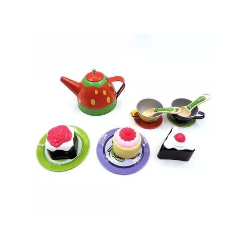 - Komplett teaparti készlet - Tartós fém anyag - Élénk, színes dizájn - Fejleszti a szociális készségeket és a képzelőerőt - Könnyen tisztítható - Biztonságos kialakítás Csomagolás mérete: 22 x 34 x 8 cm
