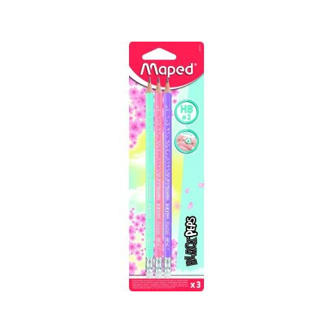 MAPED : Black Peps pasztell radírvégű háromszögletű grafitceruza készlet - HB, 3 db ceruza termékleírás