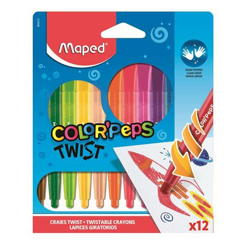 Zsírkréta, kitekerhető, MAPED "Color`Peps", 12 különböző szín