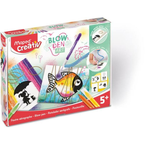 Fújós filctoll készlet, MAPED CREATIV, Blow pen Art, pop (IMAC846710) - készítsen csodálatos festékszóró hatásokat a fújós filcek és sablonok segítségével. - 5 éves kortól. - a doboz tartalma: 1 db festékszóró, 6 db Jungle filctoll, 4 előrenyomtatott