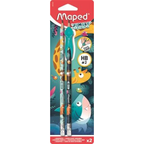 1 kép MAPED Grafitceruza radírral, HB, háromszögletű, ceruzafogóval, MAPED "Jungle Fever", kétféle minta