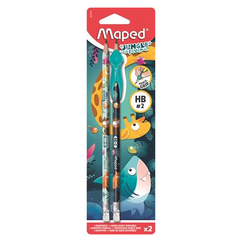 1 kép MAPED Grafitceruza radírral, HB, háromszögletű, ceruzafogóval, MAPED "Jungle Fever", kétféle minta
